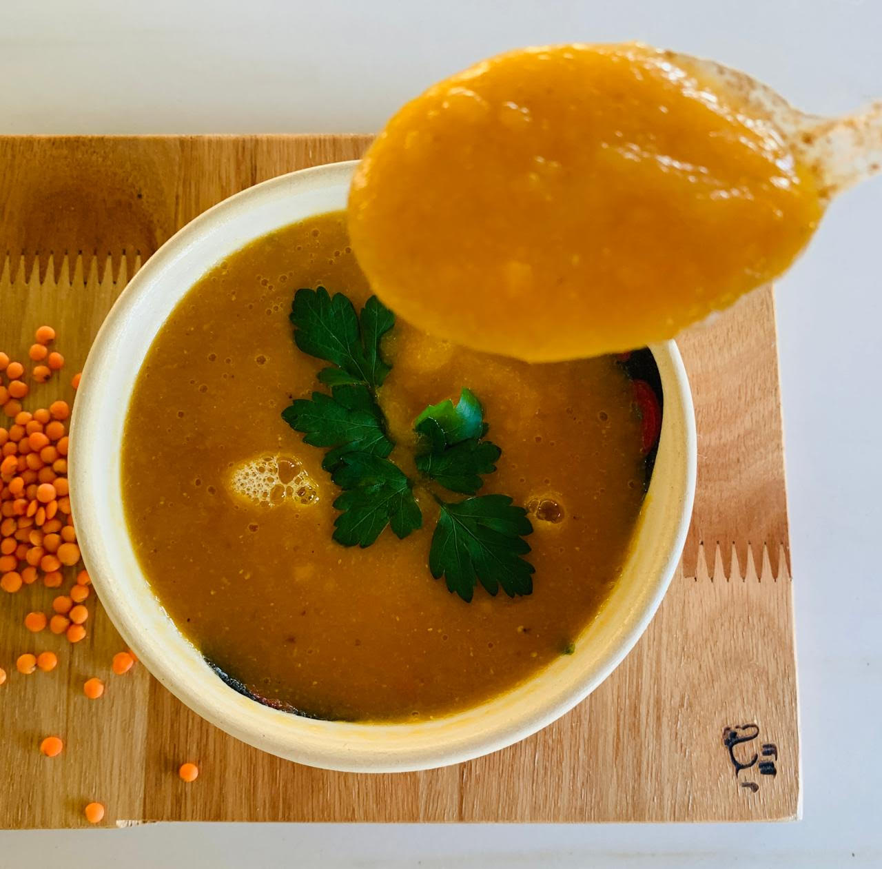 Sopa cremosa con lentejas turcas.